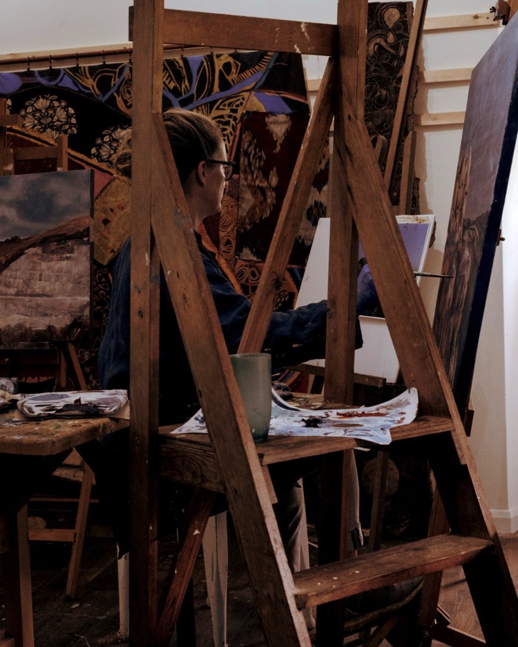 The grounds are stunning and packed with wildlife, rabbits, deers, foxes and birds. The shepherds hut was cute and really well built. The bed was really comfortable with a window at the foot of the bed overlooking the hills. The studio was a really cool big space, the largest I have ever worked in.